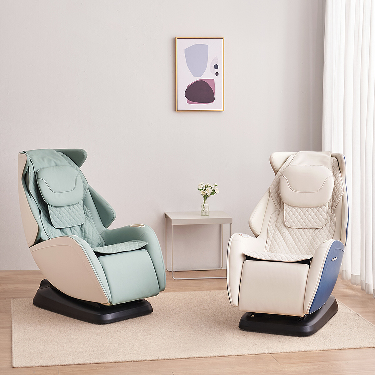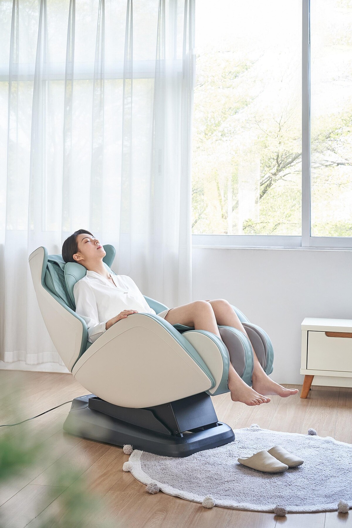 推出莫蘭迪綠、夜空藍兩種限定色,配色高雅時尚,搭配各種居家風格都很適合。若不使用按摩功能還可利用背部靠墊阻隔按摩機具的異物感,再翻轉腳部按摩墊設計,親膚柔軟的皮革觸感,還可以一秒變身舒適的沙發躺椅!