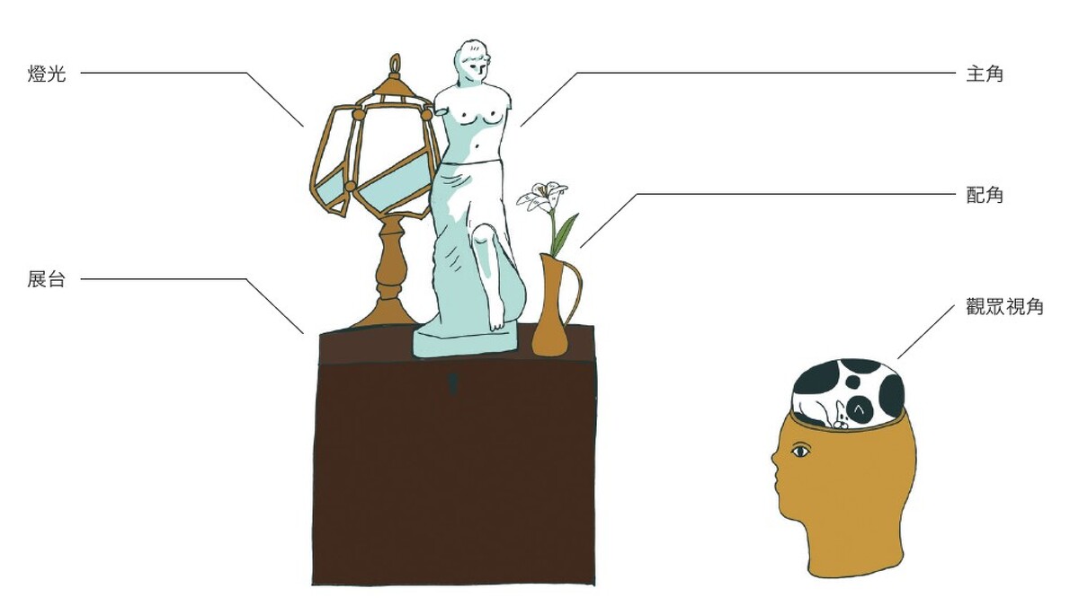 由石膏像延伸而出一個想像的情境,