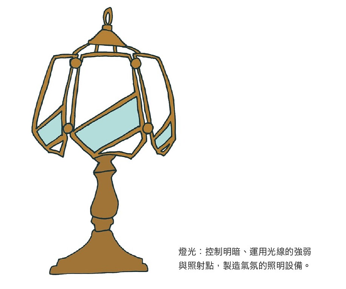 五大元素中,有主角、配角、背景的主從概念,可以不斷的重複,在重複中的公式中又有主角、配角之分,像這樣去調度彼此的關係比例,然後利用燈光去營造氛圍,就是一種平衡與美感的鍛鍊。