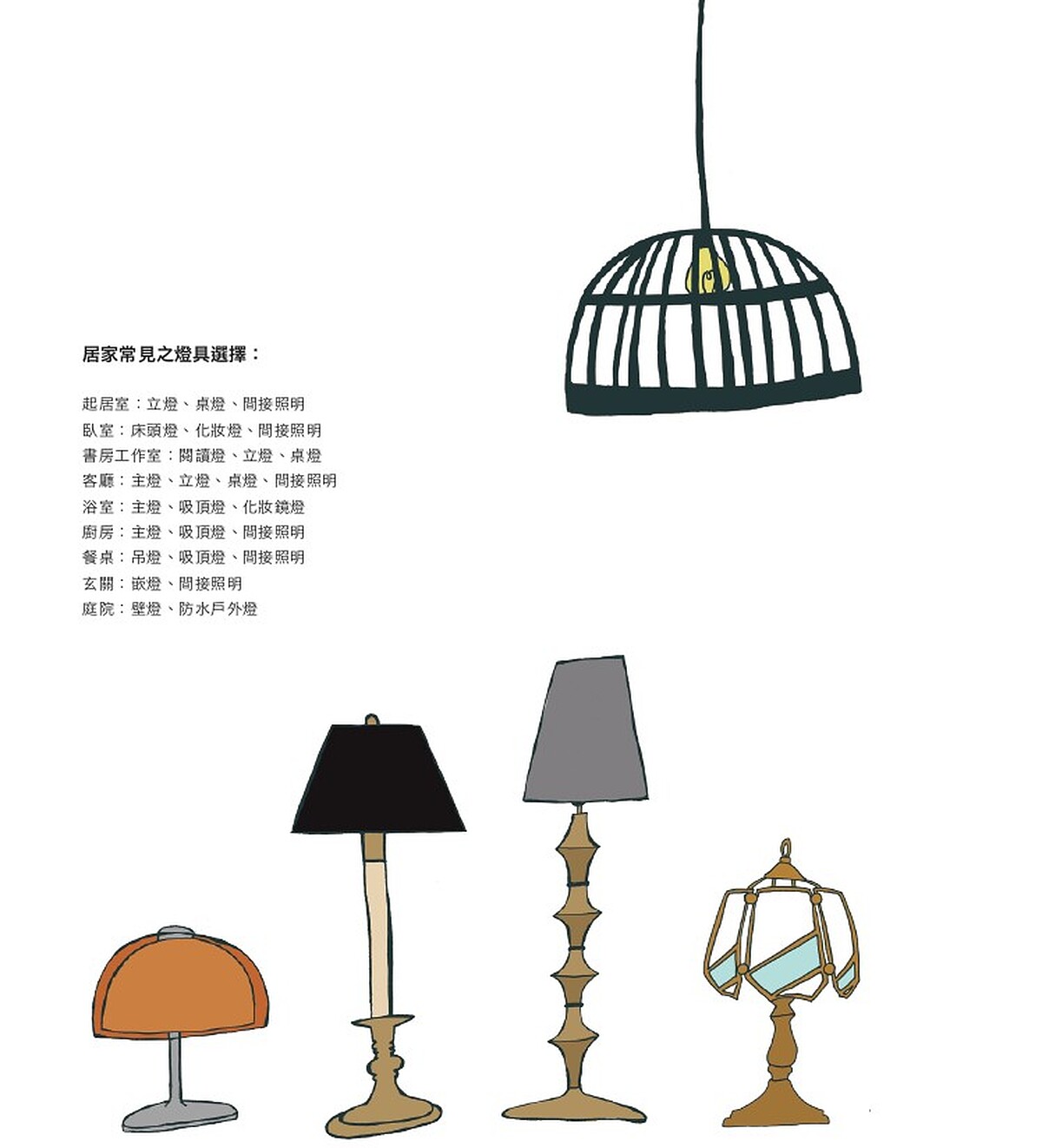 略低於一般視覺高度,維持中間調性的明亮度,例如桌燈、檯燈,維持空間中間調性的亮度。
