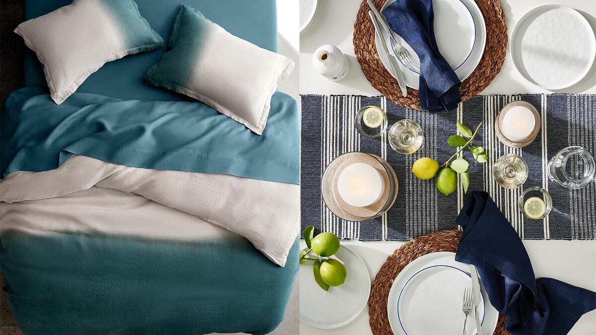 沒辦法度假也沒關係,大可以把海邊的愜意清爽搬進家裡頭!春夏新品大量加入地中海風格的藍、白色調,以及在家具、寢具與餐具上運用淺色木紋設計,將慵懶氛圍與現代風格結合,營造出迷人又自然的簡約質感。