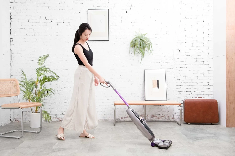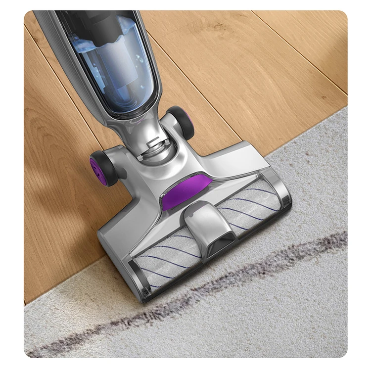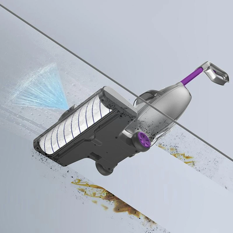 具有獨家噴水洗地功能,軟化地板上的頑固污漬,能隨個人喜好控制水量「噴水」,有效因應各種清潔情境,不論是打翻飲料、寵物便溺,都能即時清潔毫無壓力,拖完不留水漬,時刻保持地面乾爽!