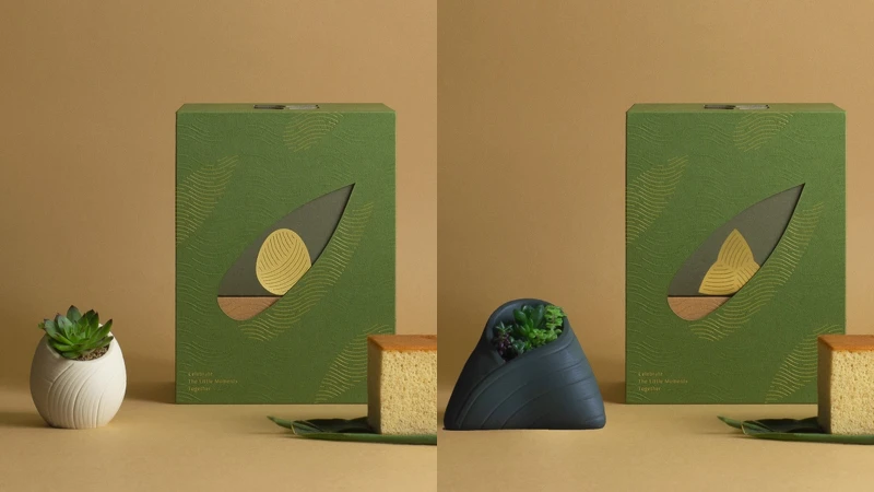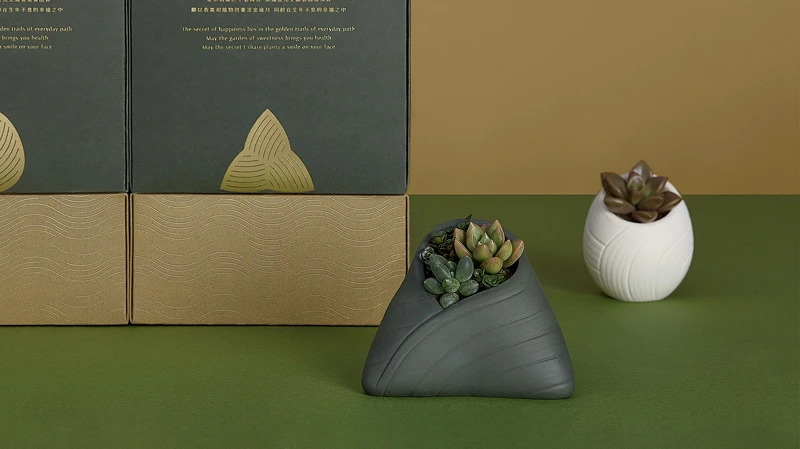 禮盒內容物也精心設計,可以選擇粽子或蛋形兩種盆器外型,其紋理皆融入月桃粽葉,為盆器提升不少耐看與細緻度;還有微磨砂質感、透氣水泥質感,能好好呵護心儀的多肉植物。