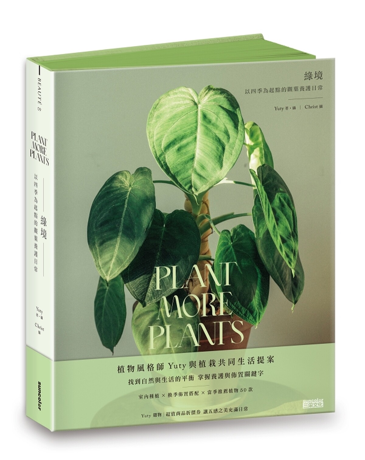 此為植物風格師 Yuty 的植栽生活提案,帶著讀者打開五感,細細體會四季更迭、光線角度、溫度與濕度變化,從每個季節最該注意的關鍵字開始,書中推薦超過50款適合台灣養殖的品種,及如何與空間搭配、相關的器具設備之運用等,帶你一起領略四季植物在生活中的美好。即日起開始預購,將於6/2正式上市。