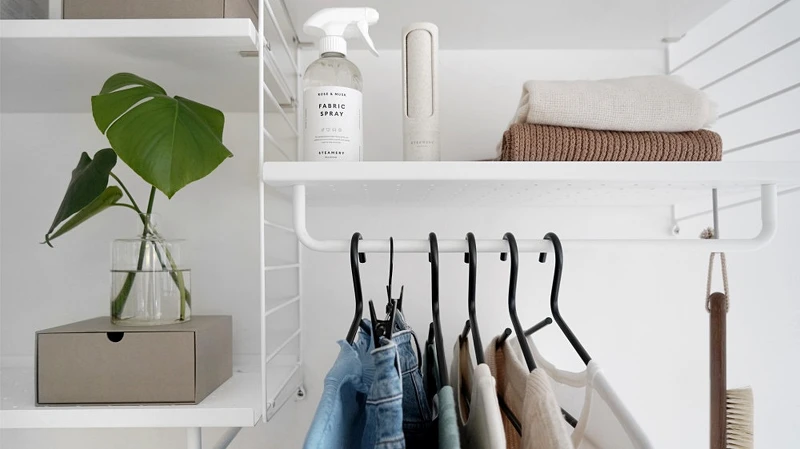 像是襯衫、絲質或針織毛衣等織品衣物,收納前需要進行清洗、整平,可以使用「蒸氣掛燙機」消毒、去除異味,還能使衣物纖維膨脹並恢復形狀及質地。還可以使用去味噴霧、香氛噴霧,並掛在通風處一晚,讓衣物回復到最乾淨的狀態。