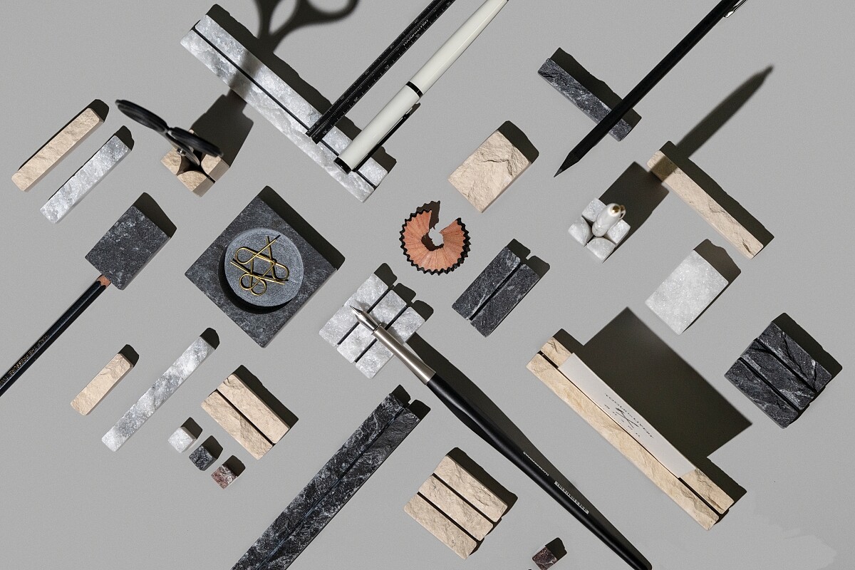 同達大理石探索大理石的紋理與結構超過五十年,擁有豐富的專業加工技術,T22花蓮聯名計畫「期望改變書桌上的風景」為名的生活風格品牌禮拜文房具合作,再邀請近年活躍於各大國外設計品牌 NAKNAK 聯手,推出「MARBLESCAPE」(marble + landscape之意) 筆座、名片座、削筆器及磁鐵系列作品,同時也是禮拜文房具10週年慶的合作新品。保留原石的自然面,以最小幅度的機械加工,將大理石原始質地的美感融入一系列文具之中,無論單獨個體或是彼此層疊,都將成為書桌上即手可得的花蓮美景。