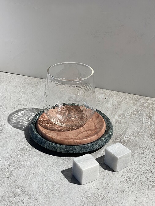 台灣設計團隊 Yenchen & Yawen 擅長以複合媒材、人文故事創作商品,此次聯手家居品選物平台WUZ屋子與經驗豐厚的奇鈺家居,設計推出「sgadan 神秘谷 水石杯盤組」,靈感來自拜訪太魯閣 sgadan神秘谷之經驗,以「溪水穿鑿在大理石間,奇石與流水相輝映」為意象,將「石」與「水」以錘紋玻璃杯及大理石盤作為搭配,光線將穿透玻璃杯相映出波紋折射至大理石盤,粼粼波光相互輝映,讓餐桌上也能看見台灣東岸峽谷獨特的水石之美。