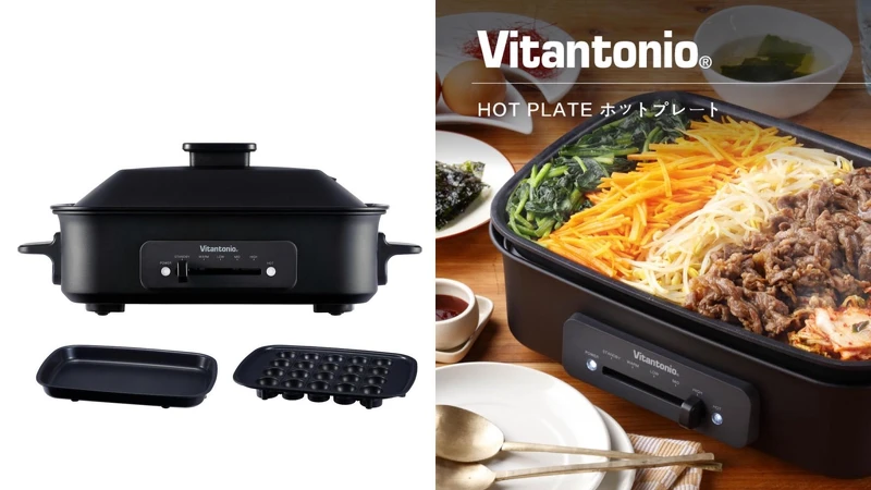 「Vitantonio多功能電烤盤」提供4種烤盤,平煎烤盤、章魚燒烤盤,及需另選購的燉煮深鍋、鴛鴦深鍋,烤盤溫度可自由設定70至220℃,平板式加熱版H受熱平均,製作鹹、甜食都適合,沉靜質感霧夜黑機身更增添家中格調!