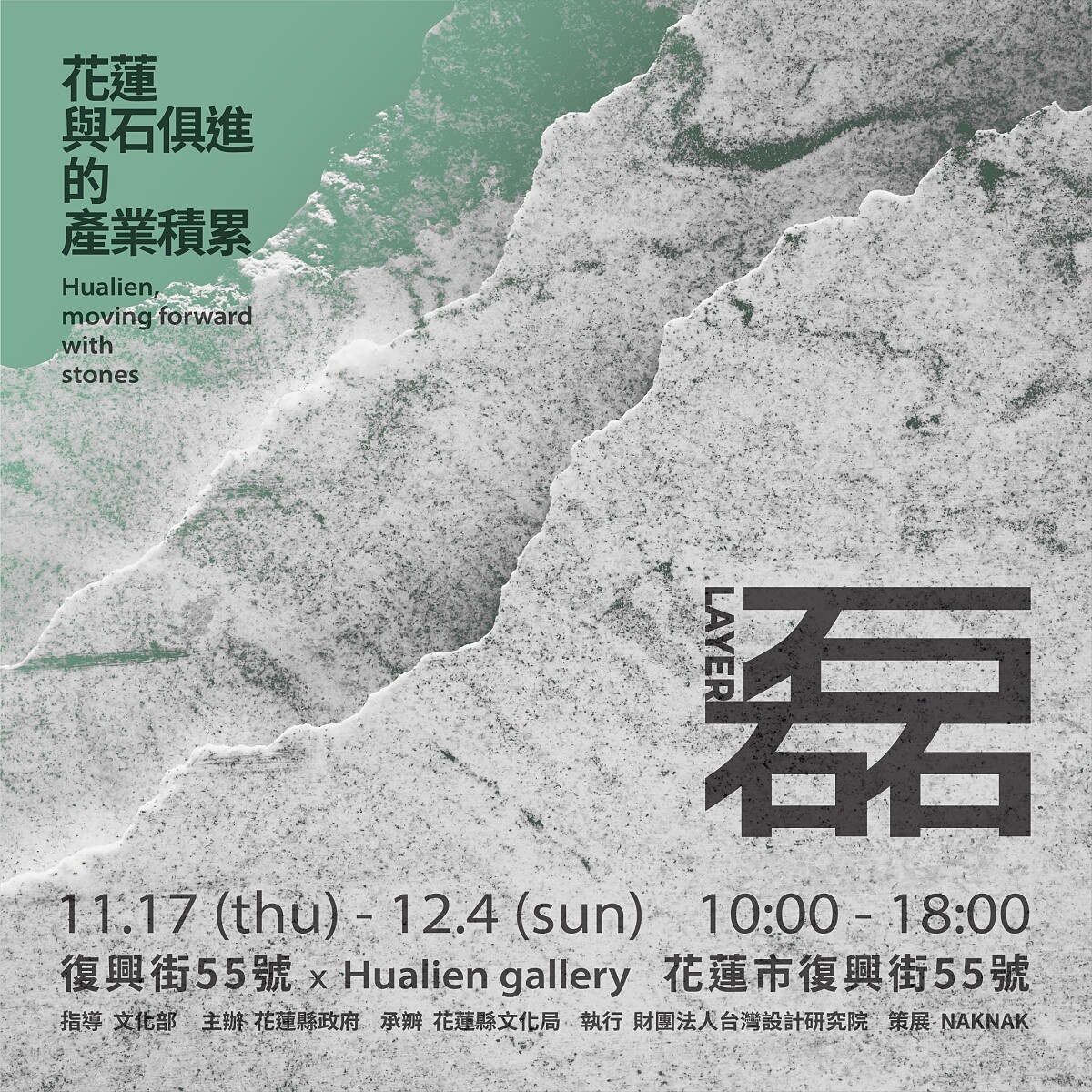 《磊Layer—花蓮與石俱進的產業積累》特展由花蓮縣文化局聯手台灣設計研究院主辦,並交由設計團隊 NAKNAK 策劃呈現,內容以三大主題「花蓮石材產業概況介紹」「重點加工技法」「未來願景與運用創新」揭露石礦產業的豐富樣貌,以深入淺出方式解說的產業背景,透過展覽讓很少被提及的花蓮石材加工能力被大眾所了解。