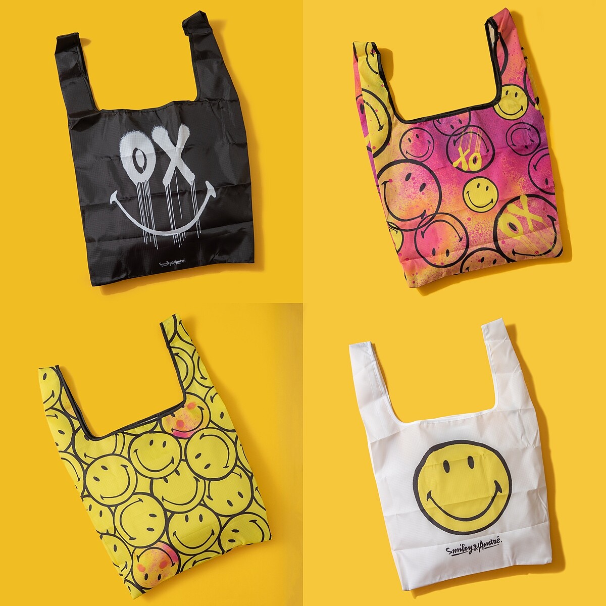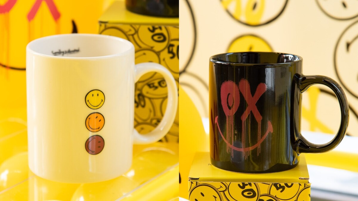 雙方攜手推出的聯名系列包含黑色塗鴉設計的棉質長袖上衣、4入裝饒富玩心的襪子組、輕巧好攜帶的摺疊購物袋、搶眼耐裝的帆布袋、黑白陶瓷馬克杯、晚上也能閃爍溫暖光芒的LED小夜燈,還有極具潮流氣場的口罩,不論出門或待在家都可以傳遞與接受「黃色笑臉」的歡樂氛圍。