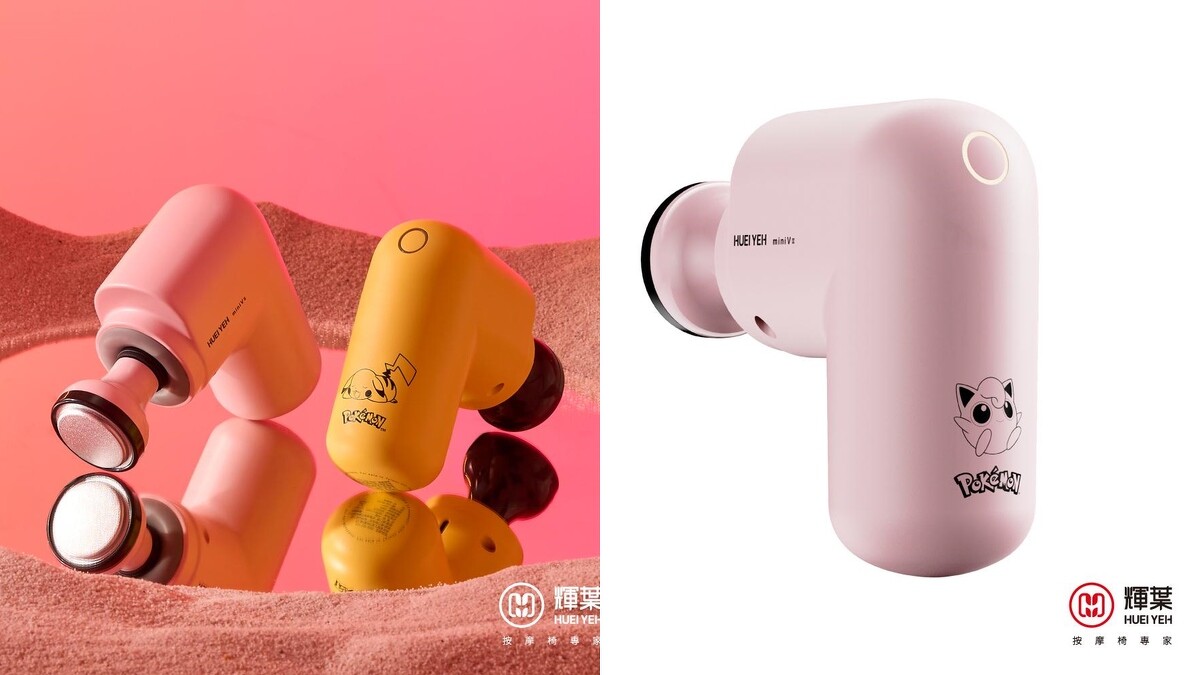 寶可夢大師、運動女孩會瘋掉!由寶可夢官方授權的按摩槍,除了擁有7種按摩頭、6檔變頻振動頻率能舒緩肌肉及肩頸痠痛,480克輕量設計、安全定時15分鐘都不造成過度負擔。顏色有胖丁粉、皮卡丘黃,使用起來肯定洋溢好心情,特價3280元。