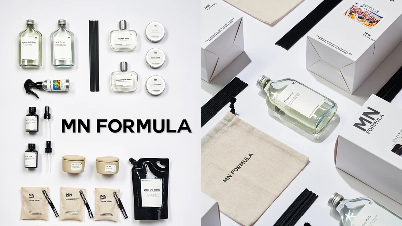 一走進店面,右手邊陳列、獨家代理品牌泰國香氛品牌MN Formula,以茉莉香米作為核心配方,10款能聯想到特殊情境的香味,有圖書館、騎哈雷重機、綠植空間等,既能展現出獨具品味,同時也對兒童及毛孩友善,品樣包含香氛蠟燭、居家擴香、香氛噴霧、香水。旁邊的迷你主舞台會陳列當季主打商品,目前選品為歐系家居La Rue. 66、荷蘭品牌HK Living。