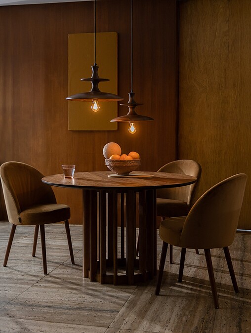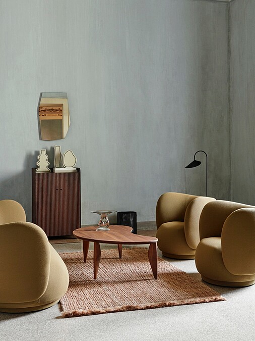 為荷蘭品牌 Zuiver 集團與旗下品牌 Dutchbone,今年秋冬家居新品,透過織品色彩與有機圓弧造型鮮活空間,加上棕黃色塊、淺棕色布面的彎月圓弧沙發,與飾以核桃木色漆的木塑圓弧吊燈,構築出既復古又典雅的中性空間。