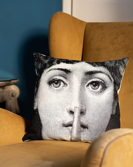 這款抱枕可以說是藝術與功能的完美結合。抱枕的兩面分別展現了歌劇女伶 Lina Cavalieri 的不同面容,為其標誌性的「Tema e Variazioni」系列。藏家可根據心情隨意翻轉枕頭,彷彿擁有了兩款不同的抱枕,這不僅是家居裝飾,更是真正的收藏品。