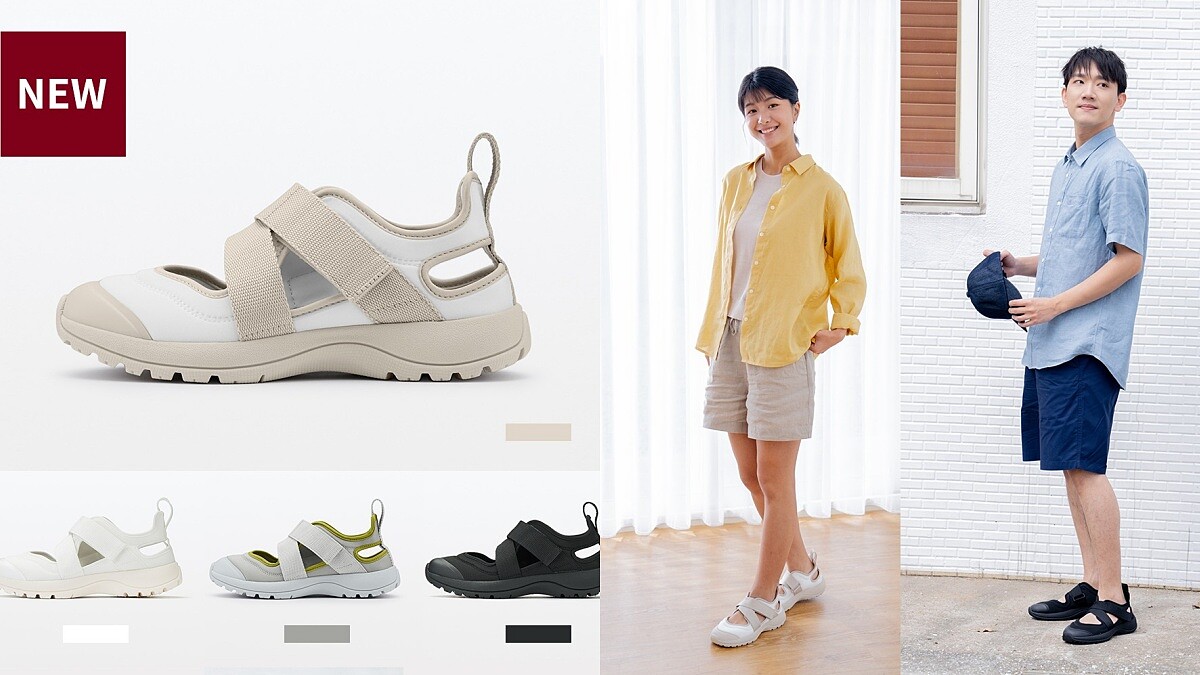 4月中引進台灣的「休閒涼鞋」,提供柔白、黑色、淺米、灰色等4款百搭中性色,能輕鬆與服飾色系搭配、方便男女打造個人風格。提供XS、S、M、L、XL等五種尺寸,公分數為22.5~27cm,也可透過織帶快速調整鬆緊度,穿脫相當便利。