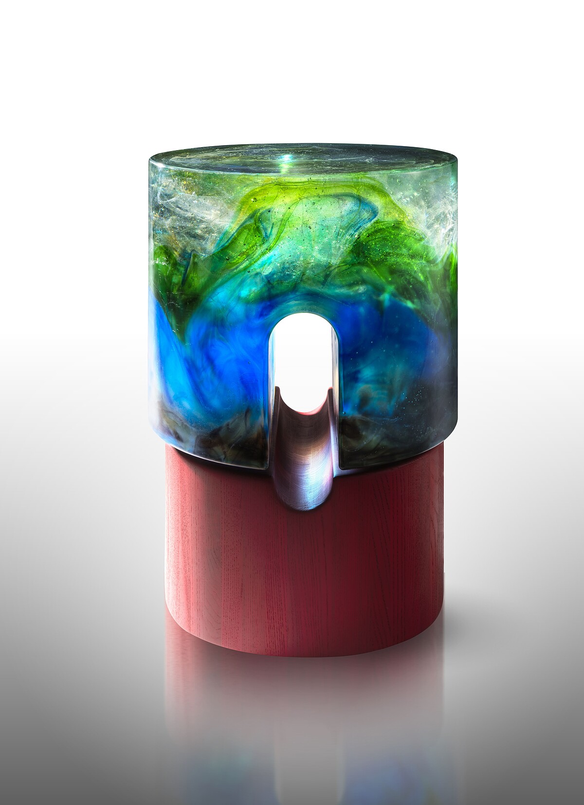 琉璃藝術與工業設計木藝相互激盪碰撞,楊惠姍與永進木器廠第三代的江世楨均表示是難得的探索旅程。楊惠姍說:「琉璃工房期待發揮琉璃透光的特質,找到讓光能夠充份進入琉璃桌的方式,並需是能被使用的桌子,讓人想觸摸琉璃質感,感受光,享受它的色彩。為了這目的,工房設計了隱藏於內部的木頭接合方式,應是讓江總費盡了心思」。內部結構之外,還要考慮琉璃較重,力學的重新計算,不斷調整桌腳的造型與寬度。楊惠姍說,因與江世楨合作,這張桌子方得以完美呈現。