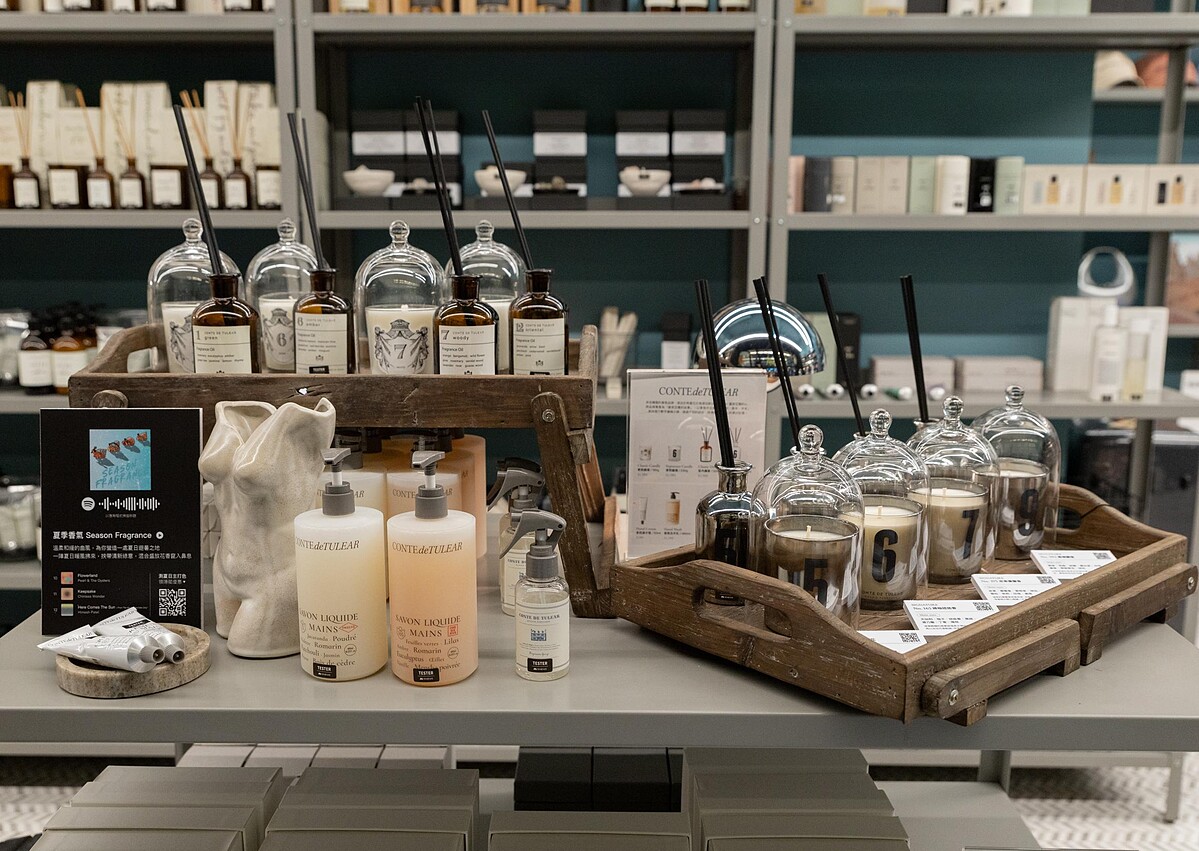 DJ 林貓王為瑪黑家居打造的「夏日情境歌單」,四種曲風、12首歌曲詮釋以下四種情境氛圍:夏日出遊、清新居家、季節香氛、時尚風格。結合商品情境和音樂的多重感官體驗,門市也會放上推薦歌單 QRCode,只要打開手機掃描,按下play 鍵, 跟著 Marais x DJ 林貓王的歌單潛入情境,跟著夏日回音,一起搖擺。