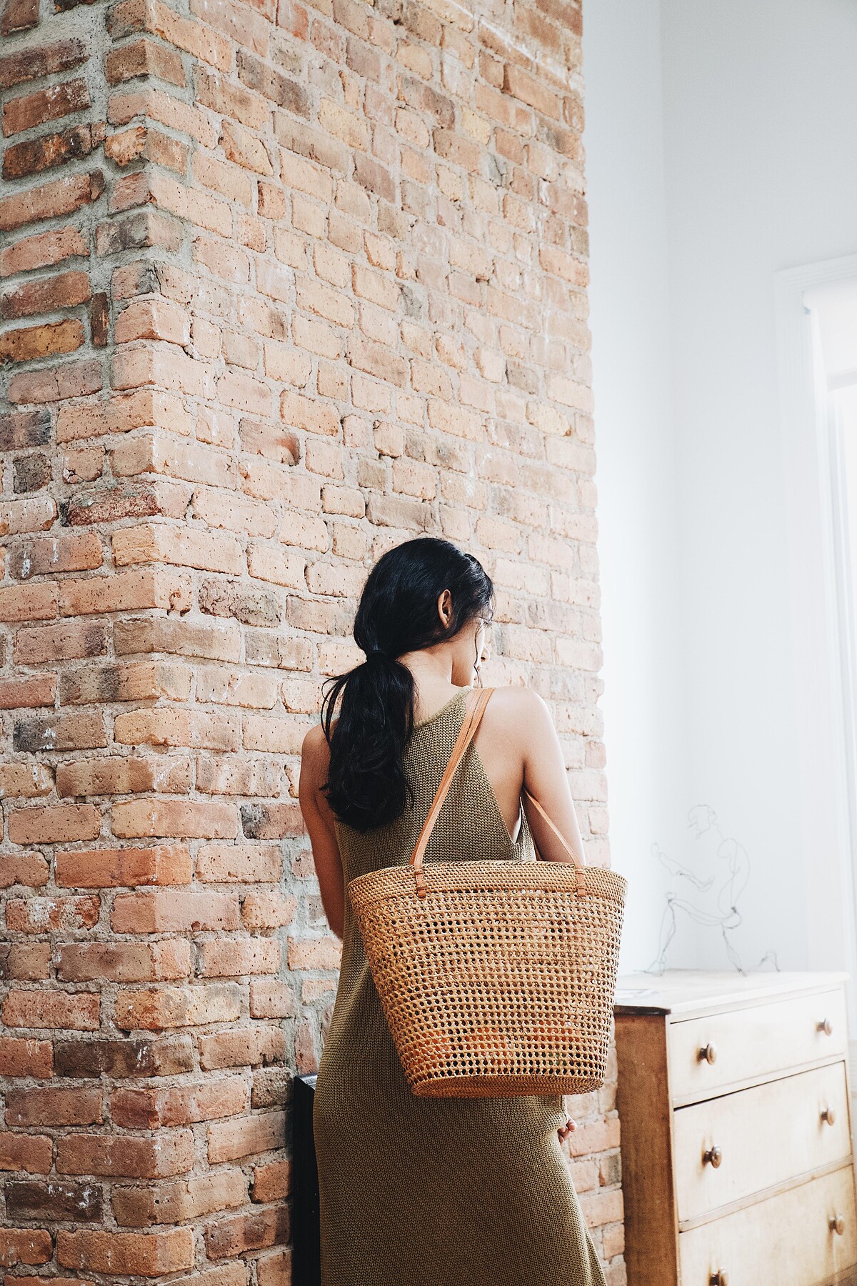 傳統手工精湛的編織工藝,賦予了包包精密的編織紋路,包身與袋口錯落的網格形 狀,讓包包整體更獨具風格。藤編纖維堅固耐用,也讓包款形狀不易變形,具有防沙功能,適合夏 天使用。背著ELENA、帶著一本書,徜徉在沙灘的擁抱之中,留給自己一點夏日的慵懶時光吧!
