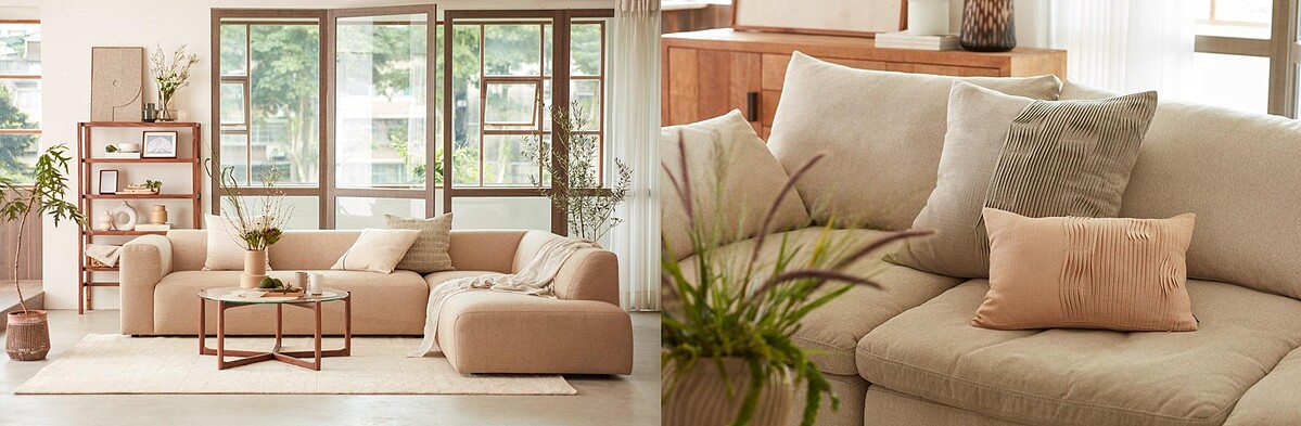 今年,自然主義持續流行,特別是從木材、礦石、植物等天然材料中汲取靈感的「地球色彩」,經典百搭且獨具安定人心的力量,適合用於全家充電放鬆的客廳。沙發作為主要傢俱,決定了整個空間的風格走向,想要打造靜謐的場域可以選擇波蘭品牌Sits的Annie布質沙發,顏色介於灰色和米色之間,展現原始樸實的質感,乾淨柔和的線條搭配模組化的設計,能根據空間需求進行組合,是當代小宅的理想之選。在家紡配飾方面,HOLA秋冬推出一系列以台灣自然地景為靈感的抱枕,PALETTE素色系列從風土中提取濃淡,將溪頭⽵林的綠、⾦⾨瓷⼟的⽩、花東稻穗的黃等化融入居家用品,牽引出對自然的想像;查莉壓線百褶抱枕,則是以充滿動態韻律的百褶工藝,捕捉浪花拍打沙灘時跌宕的層次感,將自然的氣息帶至居所。