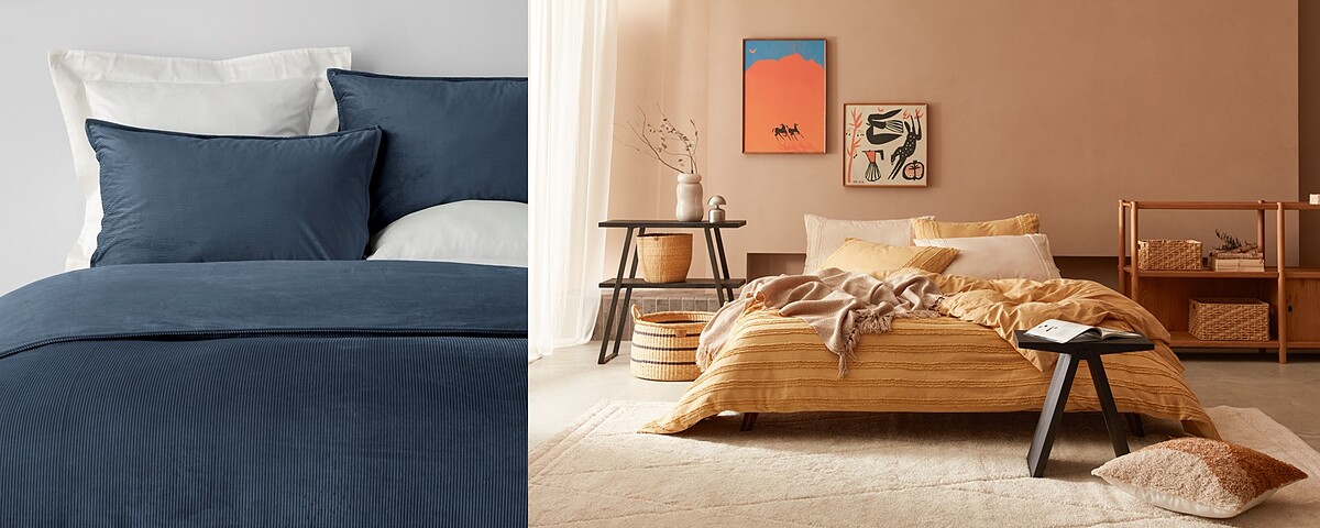 入秋後白晝漸短,宅家時間增長,有別於夏天對涼爽絲滑天絲的關注,「溫暖材質」則是秋冬的居家哲學。HOLA推薦選擇條絨及剪花工藝的床寢,打造鬆弛的臥室氛圍。伊登條絨床包兩用被組,外層選用具有圓潤飽滿的條絨(又稱燈芯絨),手感彈性且柔軟,內裡則搭配親膚的寶寶絨面料,質地厚實保暖。適合台灣氣候的兩用被設計,可以單用也可以加入被胎,無論日系city、法式極簡或是美式復古的臥室,都能打造恰如其分的時髦。奧可利剪花純棉系列,使用較純棉柔軟的水洗棉材質,並透過剪花工藝,形成如苔蘚一般規律高低錯落的風格,且經過剪花處理後的面料也更加輕盈透氣,不只美觀更兼具實用。