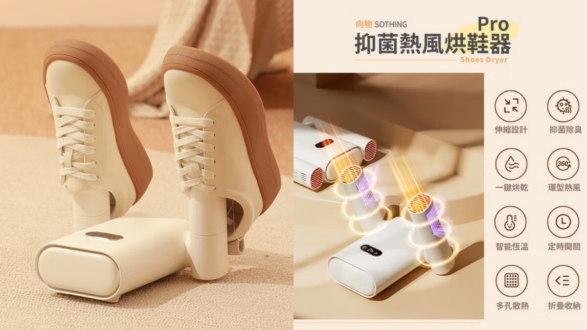 長時間穿著濕掉的鞋襪,恐會有香港腳上身!這台熱風烘鞋器具有「伸縮拉伸」設計,能適用市面大多數鞋款,55度恆溫、循序漸進升溫也不怕會傷害鞋體。可以設定2~8小時定時,完成後會自動斷電。插插頭就能使用,不用時還可收納,甚至會有消費者旅行也會攜帶!