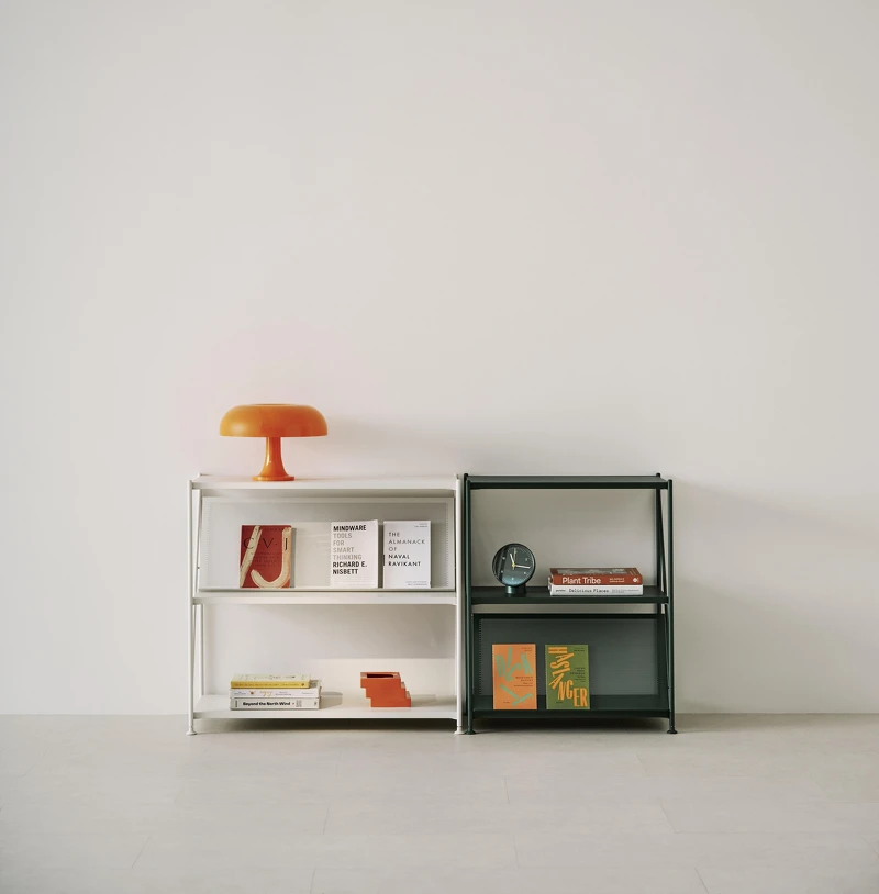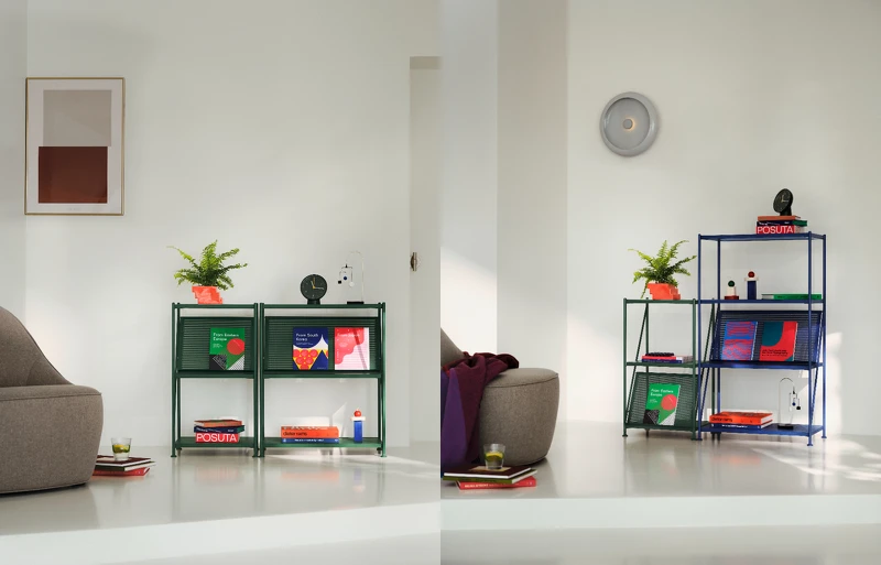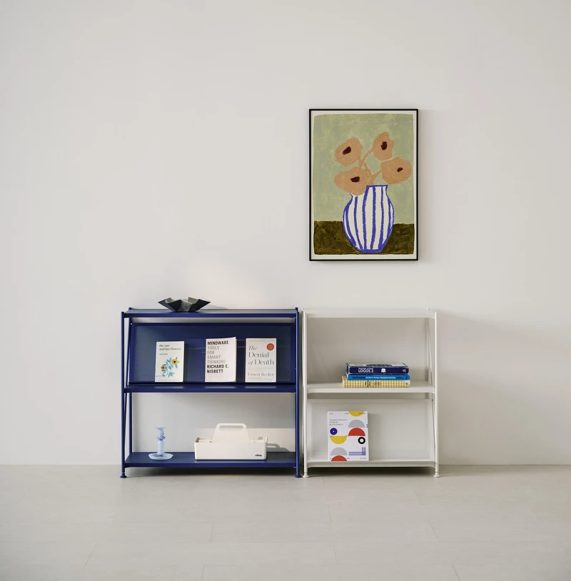 有別於層架千篇一律的色系,Hype 收納層架則以鮮明風格色調點綴出活潑感,更替冷冰冰的金屬材質注入感性氛圍,與其他傢俱進行搭配,層架也能成為時髦亮眼的主角之一。而可以自由組合的模式,無論想當電視櫃、邊櫃、書櫃、收納櫃都沒問題,更可以加購磁吸直立展示板,打造自己的照片牆,為生活空間增添現代個性美學。而展示架後方的隱藏空間可以放置凌亂電氣線路及雜物,兼具隱藏功能,也讓場域的視覺感受保持清爽又兼具品味。