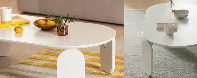 Poodle 沙發桌有 1200 型沙發桌 或 500 型邊桌可供選擇,無論空間大或小,都能擺放這宛如貴賓狗般可愛的桌子,每每看到都能被療癒。與桌板相似的橢圓形桌腳,讓場域更有活潑設計感,獨自存在也能成為亮點。 不僅外表出眾,45度斜角收邊桌板設計則增添了俐落感,讓可愛輪廓更顯簡潔,同時水平調整腳墊則替這張桌子帶來了穩定的使用環境,堪稱從美學創意到實用機能都完美兼具!