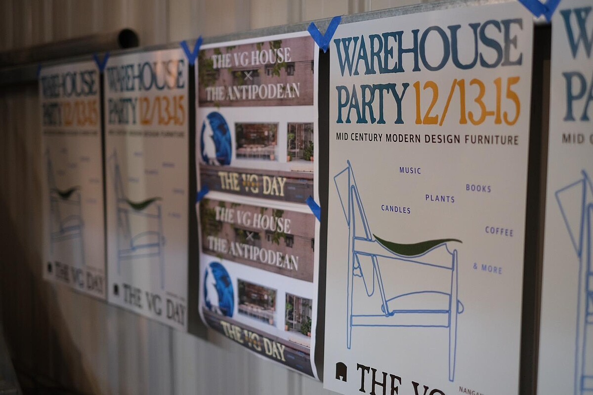 這場由民生社區北歐設計家具店THE VG HOUSE舉辦的年度倉庫派對,將丹麥尋寶的樂趣濃縮到南港,為傢俱迷和生活家們帶來驚喜和靈感。每年年末,THE VG HOUSE都會從北歐各大倉庫精挑細選,將幾個貨櫃的老件家具運回台灣,搭配全新代理的北歐設計品,舉辦Sample Sale。今年他們不僅延續這個傳統,還把活動升級成了一場多元素的Warehouse Party,將北歐的生活哲學與當地「尋寶派對」的氛圍帶到南港。