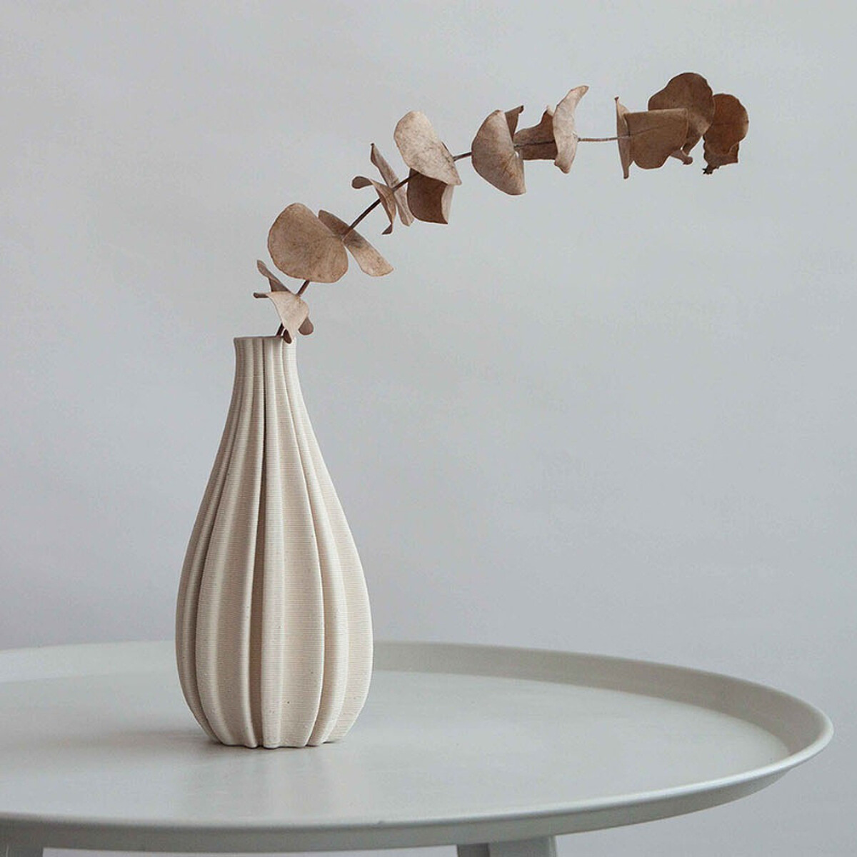 以簡約線條設計的 GEWAY 3D 列印陶瓷花器,表面保有天然瓷土的色澤及紋理,自帶優雅清新氛圍,完美展現花材的純粹之美。