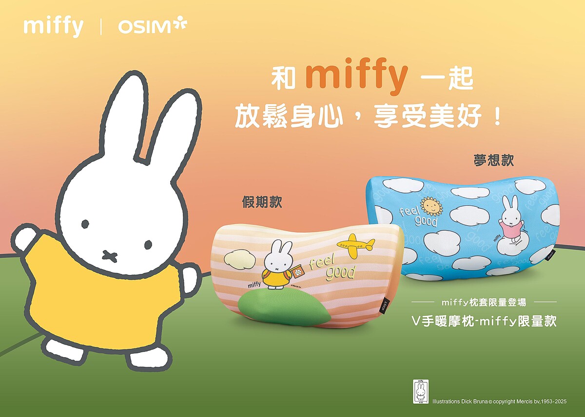 迎接miffy 70週年,OSIM推出多款限量聯名新品,療癒外型與實用功能一次滿足。包含按摩椅級的按摩枕「V手暖摩枕」,擬真人揉捏的「紓暖頸肩樂」與呵護生理期的「暖腹寶」,隨時隨處隨身、放鬆紓壓無死角!miffy系列新品,精巧設計、無線使用最便利,最低特價只要1,680元,輕鬆融入媽咪的生活日常。母親節就用一份萌萌又實用的心意,為媽咪卸下全身的疲累!