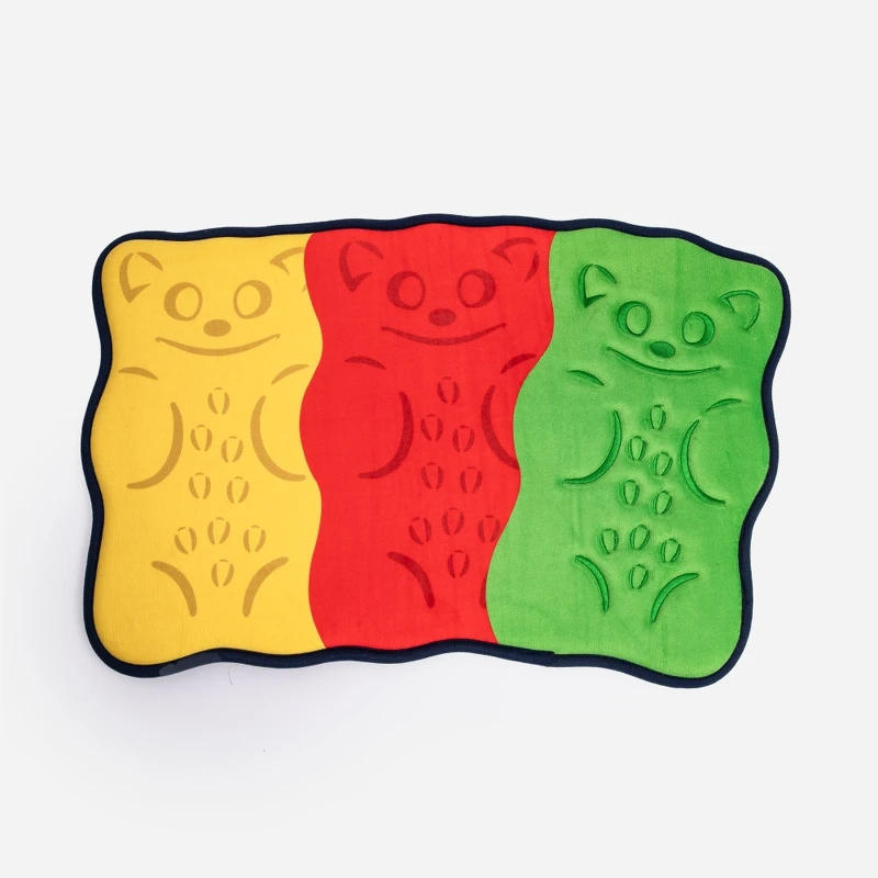 馬克杯也極具巧思!外型設計上綴有小熊軟糖圖案,杯底更有一隻紅色小熊做為彩蛋。建議把矽膠杯蓋一起入手,光是看到上面滿滿的小熊軟糖,便立刻拋下負面情緒。還有以經典紅藍色打造的「點心盤」,為下午茶或吃水果時刻都增添童趣;「造型記憶棉踏墊」宛如能踩入糖果世界,放床邊、浴室隨時點亮空間氛圍。