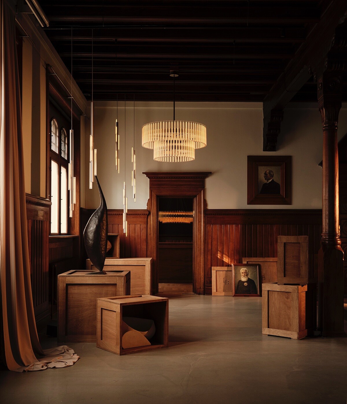 展覽場地「Asia House」建於 1897 年,原為東方亞洲公司(East Asiatic Company)總部,由航海家 H.N. Andersen 創立。滿載航運記憶與東西交會歷史的建築,則是首次於 「3daysofdesign」開放作為展場。Lee Broom 將這段歷史化為策展靈感,把空間設計成一位虛構探險家的寓所,充滿被遺落、等待發掘的光之藏品。