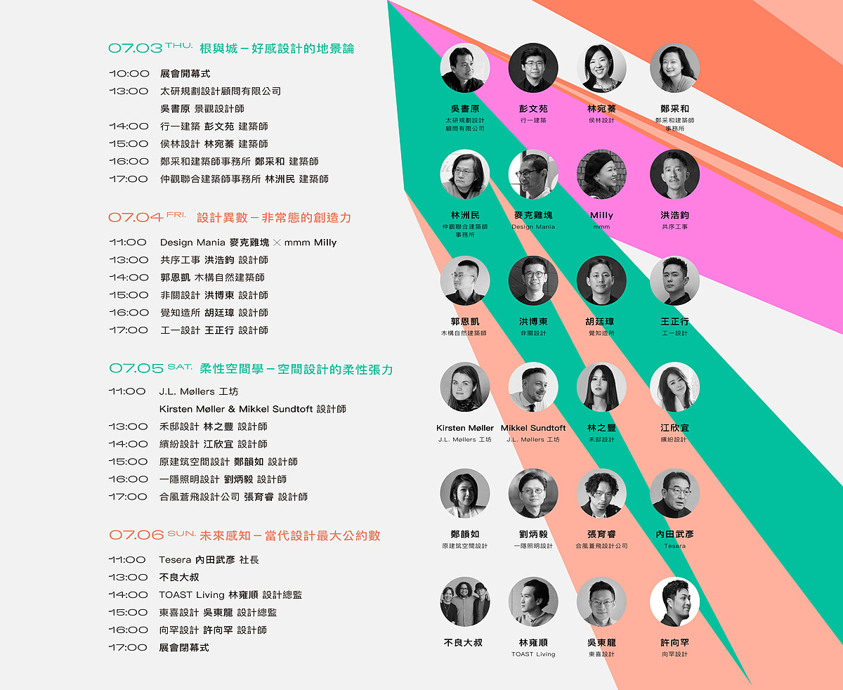 連續四天,22位來自建築、室內、工業設計等領域的講者從個人角度出發,分享他們如何在設計與生活中尋找「找出生命中屬於自我的好感時刻」,帶來深具共鳴的生命經驗與創作歷程。