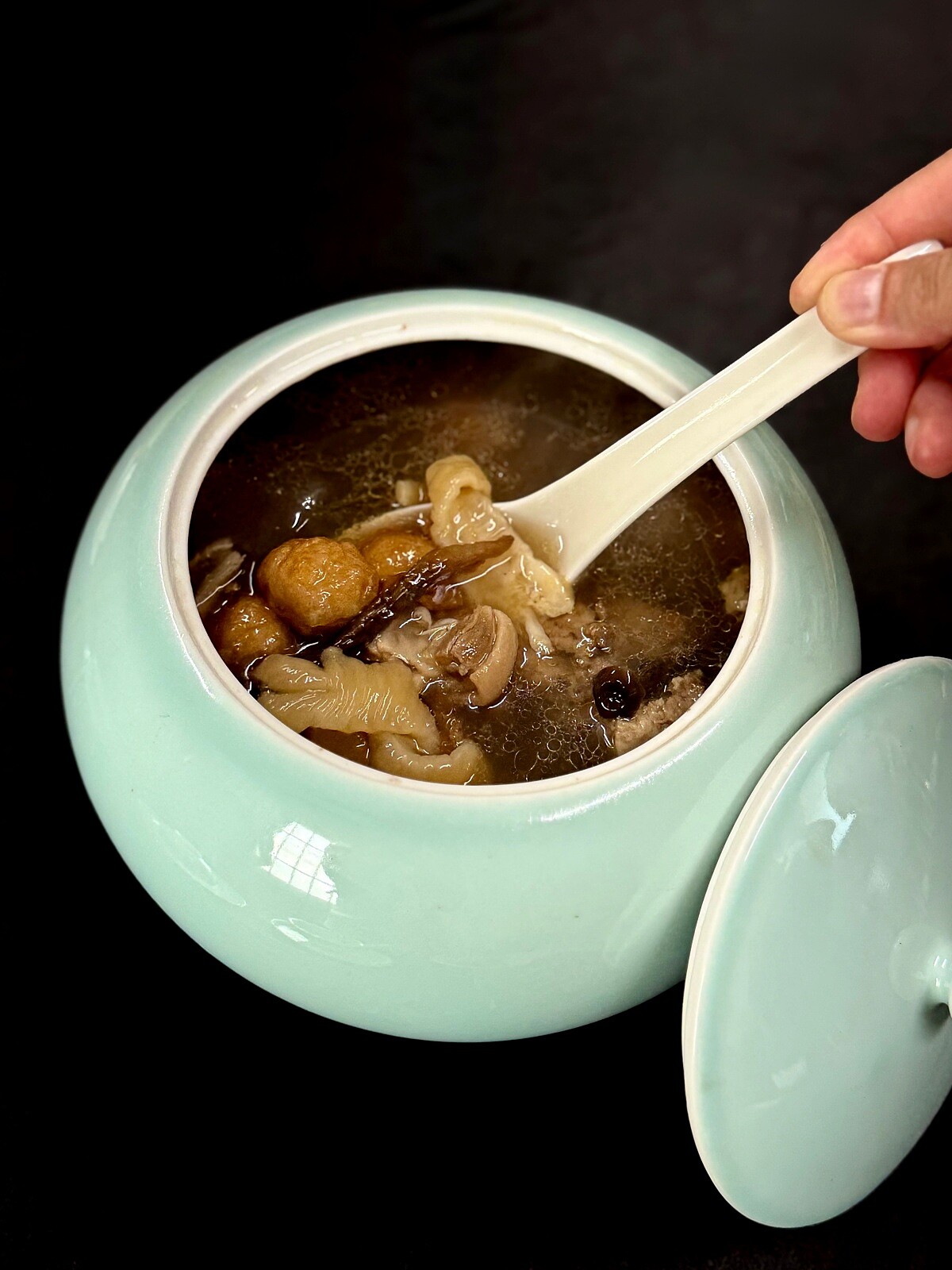 以花膠取代魚翅,呼應當代價值;搭配安達窯器皿,顯得雅緻而穩重。