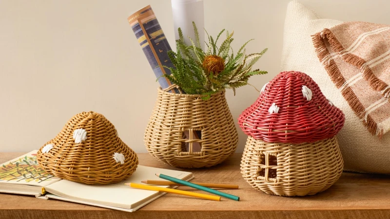 預購期間最熱銷的「蘑菇造型收納籃」,靈感來自動畫中的經典蘑菇村場景,立刻為居家空間注入童趣。因為台灣氣候特地採用PE仿藤材質手工編織製作,不僅輕巧且不易受潮發霉。超可愛造型可用於兒童房收納,讓收納環節變成每天最期待的小冒險!售價499元。