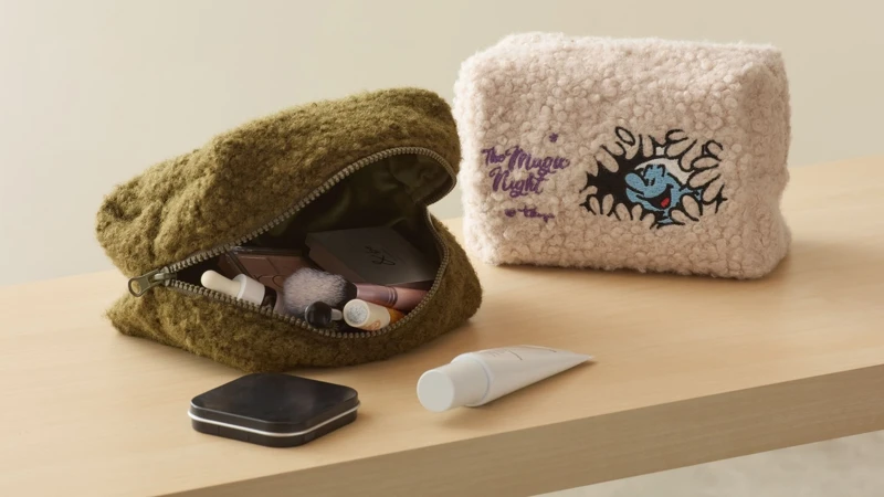 女生們保證會愛上!以內襯柔軟法蘭絨製作的收納包,尺寸為18 x16 x11公分相當合宜,裡頭更有內袋設計,譨輕鬆收納起眼影盤、梳子、口紅、眼藥水等化妝小物,完全是冬季旅行必備良伴。售價499元。