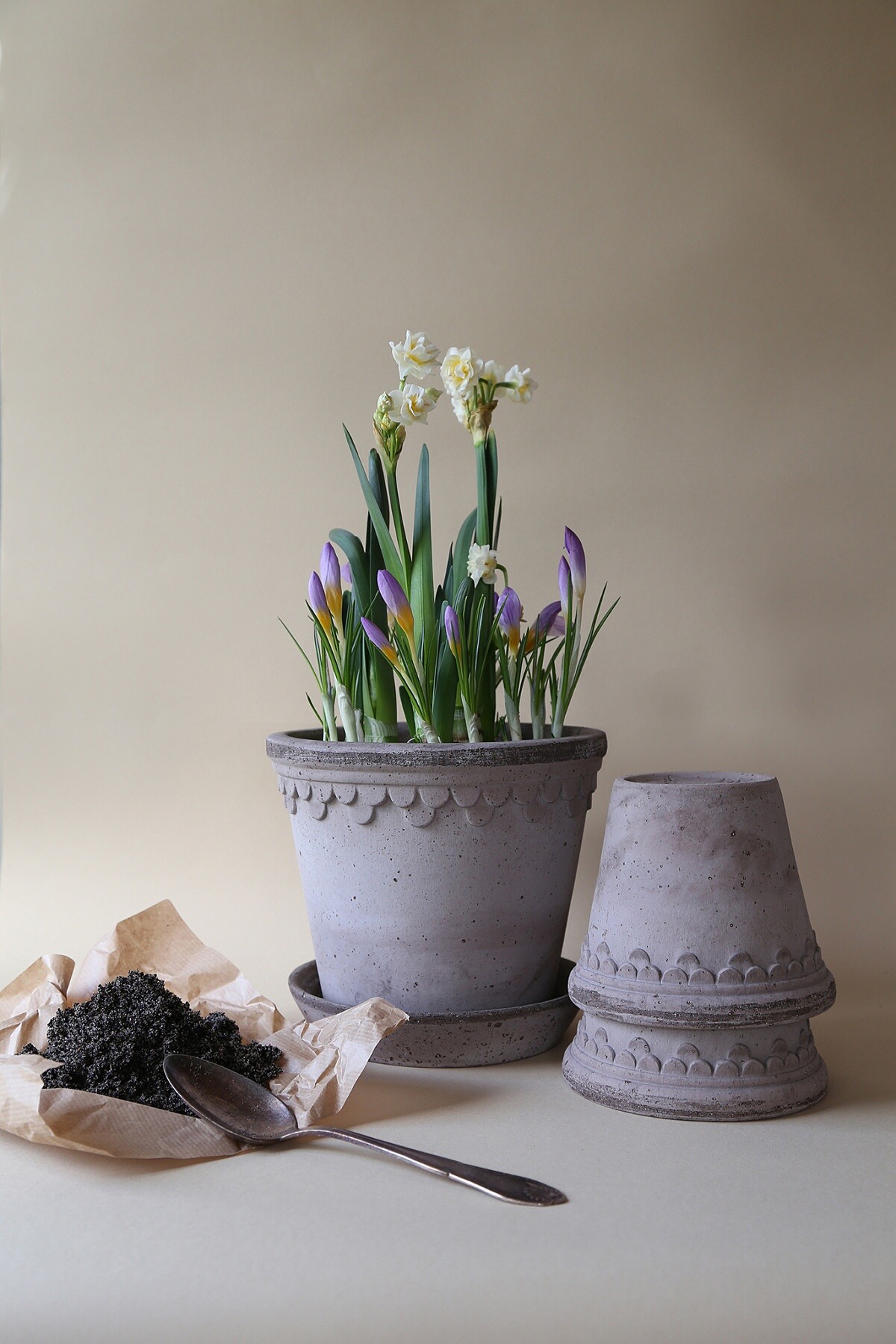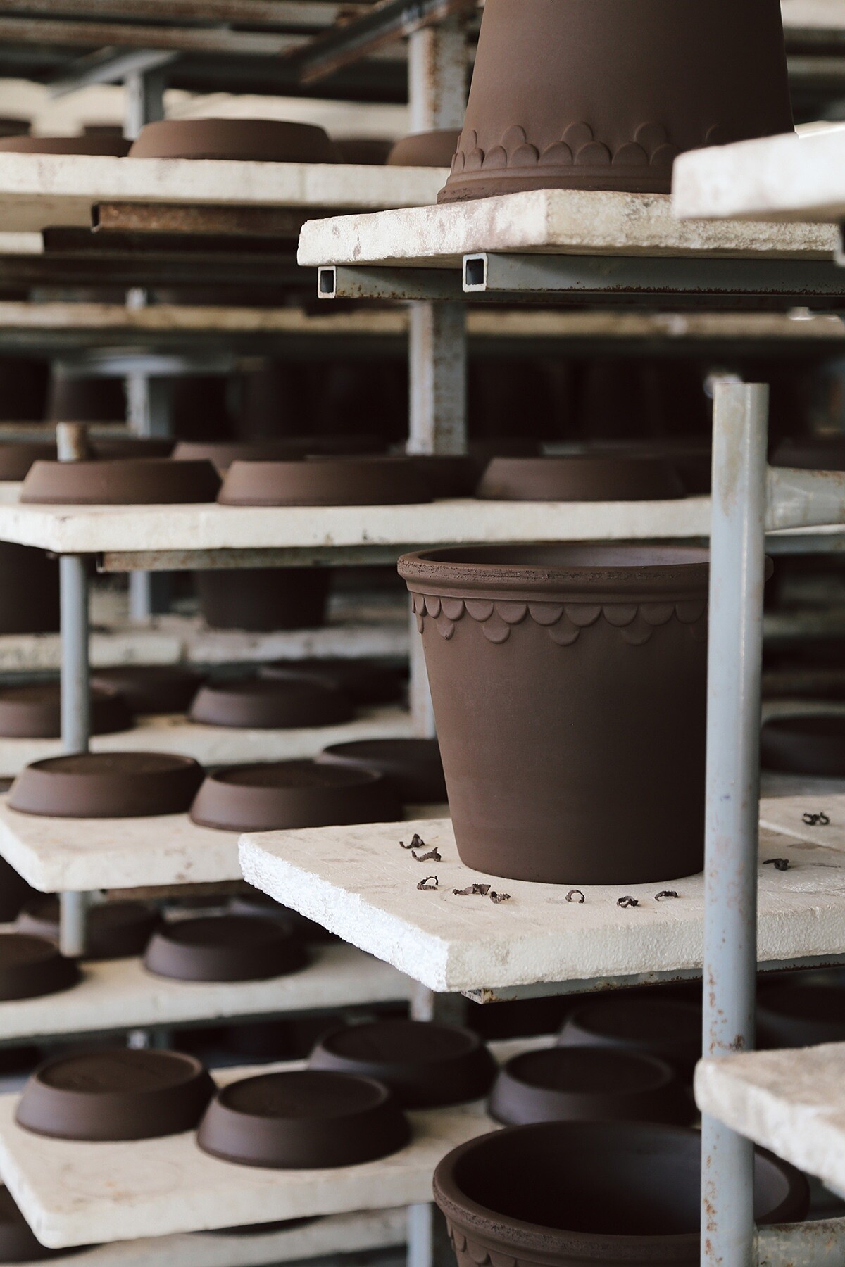 在製作過程中若產生破損的陶片,工坊會將其回收再製,重新與黏土、水混合後再投入新一批的生產。這樣的方式減少自然資源的浪費,也讓每件成品都在不犧牲品質的前提下達成更高的材料使用效率。對 Bergs Potter 而言,陶盆不僅僅是器物,更象徵品牌長期以來對自然材料的尊重。