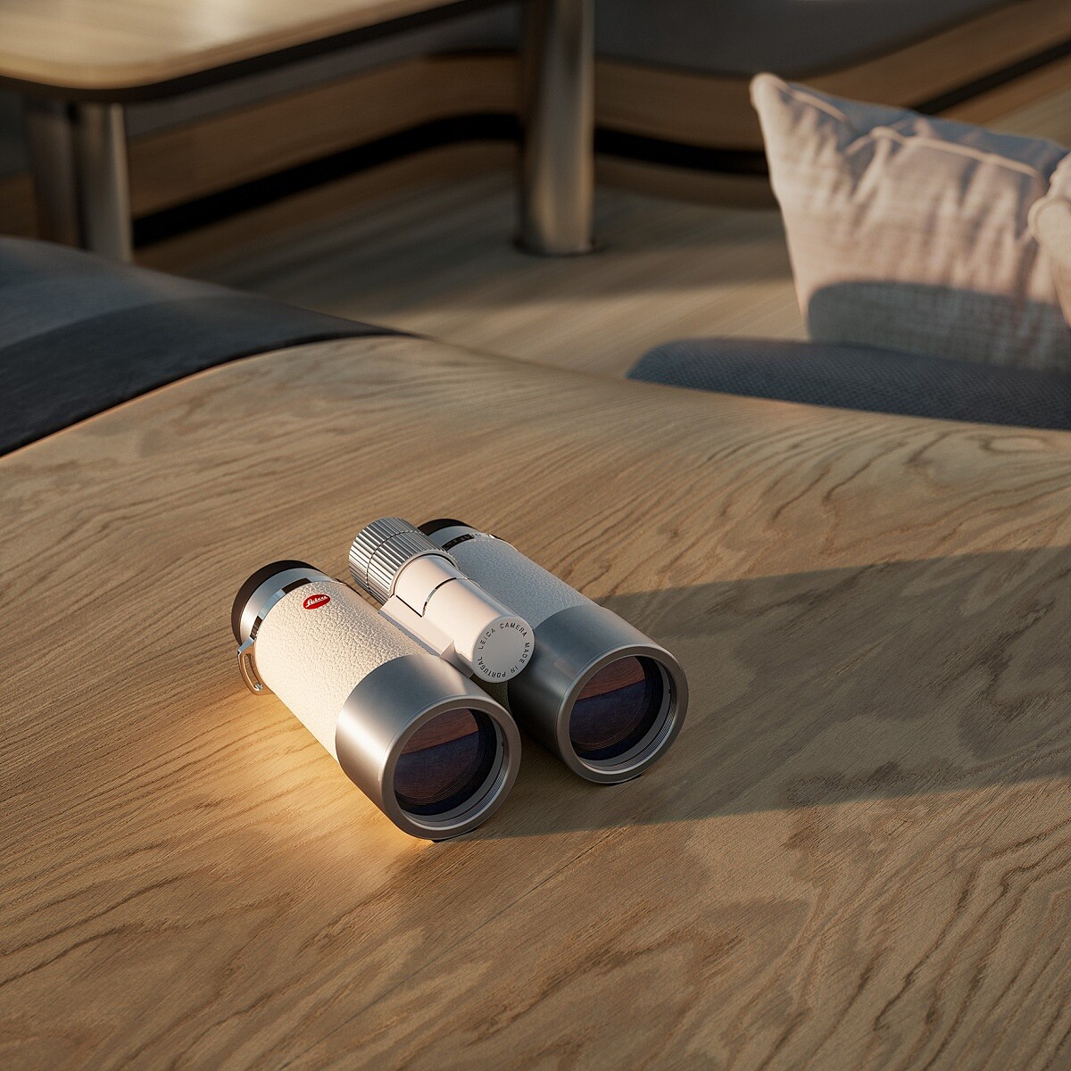 「白浪版」還特別配備同色系皮革背帶與可折疊鏡套。鏡套以磁扣固定,放在光滑的船面、木質桌面上也能穩住位置,不必擔心滑落,是一項完全可融入旅行與生活場景的物件。