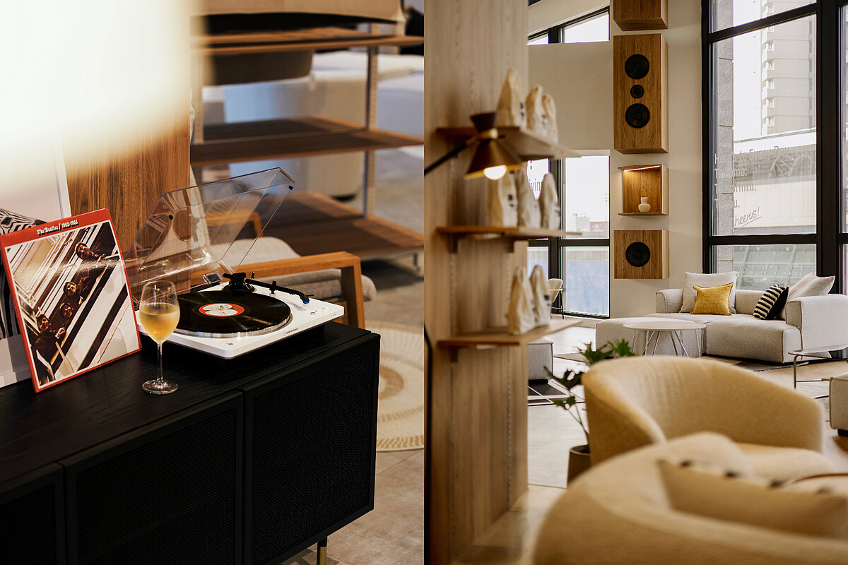 這一次插旗桃園,青埔門市最鮮明的亮點是日厝首度嘗試的Home Bar店中店設計,品牌觀察到許多真正被記住的居家時刻往往來自一杯酒帶來的放鬆狀態。下班後的微醺、朋友圍坐的對話,這些片段讓空間產生溫度,也讓家成為情感流動的場域。Home Bar並非是單純的點綴,更是被完整納入空間節奏。吧台位置與家具展示彼此呼應,品飲與試坐不再被切割,而是自然交織。人在這裡,會不自覺地坐久一點,聊多一點,讓身體先適應空間,情緒再慢慢跟上。