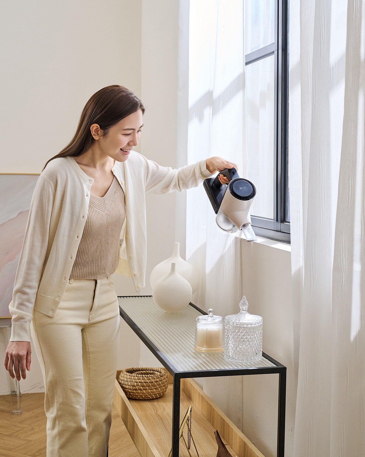 讓人一用即有感的輕盈,單手就能完成整間房的打掃,輕鬆清潔到高處與傢俱下方,即使長時間使用也能維持舒適手感,讓清潔更優雅省力。