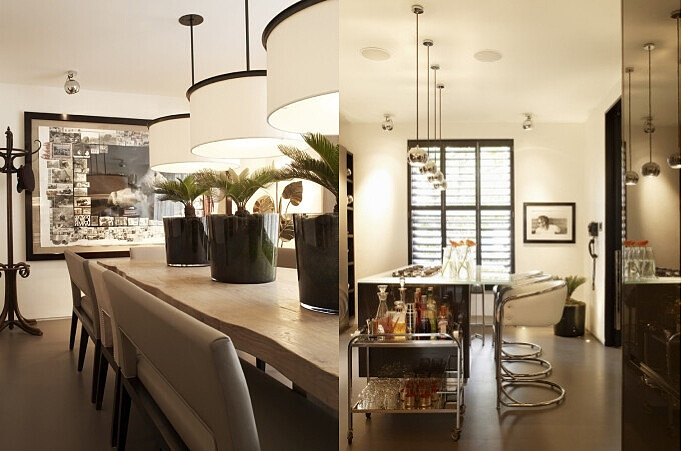 主餐廳橡木長桌上,三款巨型植栽對等呼應吊燈;牆上掛著的 Peter Bread 攝影作品是喜愛的珍藏之一。但為何畫框中拼貼許多非洲動物集錦照片呢。因為 Kelly 在南非出生,洗練自主的設計,常會受到幼時居住在祖父母位於非洲家園的異國風情渲染,嶄露懷念之情。總是提及對自然與周邊人群觀察將會替自己帶來體會,也就因此成為生活各處的靈感來源。喜愛人群互動,在後花園也同樣的以寬敞又好坐的木質戶外桌椅,營造一處開放且接近自然的休閒空間。