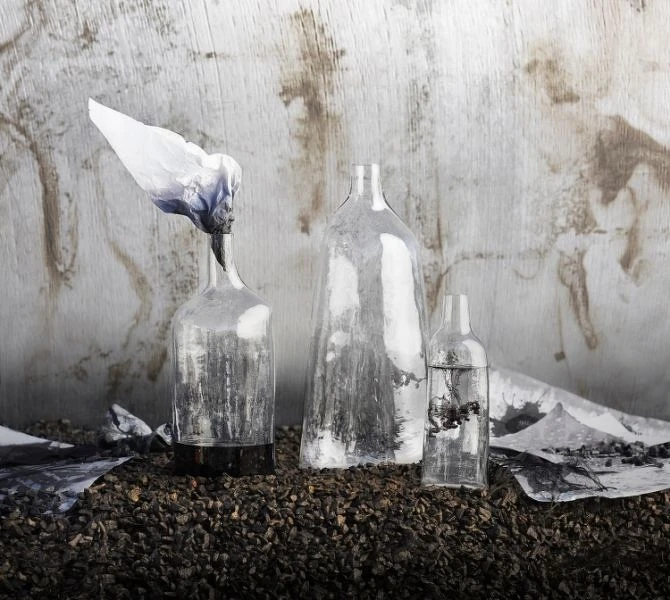 整個SVÄRTAN系列都在印度生產,馬丁更邀請25名來自新德里國家時尚科技學院的學生一起參與。運用了多種天然材質與物件,透過圖紋設計與色彩緊密結合,打造出兼具材質與設計感的系列作品。其中這款手工製的口吹玻璃花瓶,以不規則外型呈現,正闡述設計師馬丁鍾愛的「完美的不完美設計」,不論是當桌飾,或擺放花朵都會是居家擺設中的亮點!