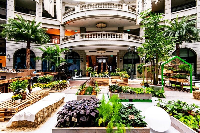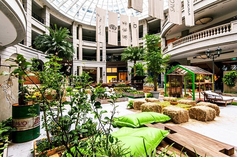 使用2017年代表色『草木綠 Greenery』作為主軸,不只象徵著振興、再生與恢復生氣,綠色也涵蓋著城市人的日常,大自然的本意,這次在室內搭建自然溫室植物園,種植了萵苣、南瓜、番茄等各種蔬果,清新的田園景觀旁邊還有大面積的青青草地,讓在外頭吸收過多城市空氣的繁忙人們能夠進來這裡停留,深呼吸、看看大片的綠色風景,讓眼睛和心靈好好休息!