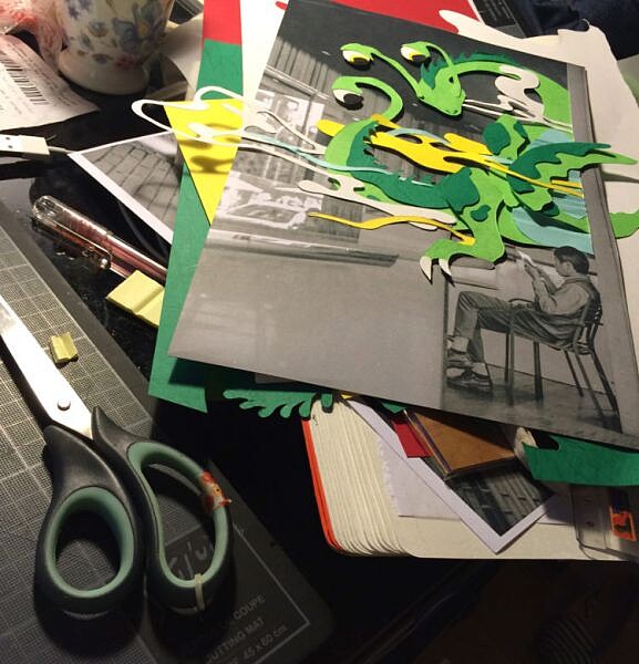 陌生人的照片、來自異國文化的故事,Huyu 用各種風格的創作方式,例如剪貼、壓克力、水墨、粉彩筆、色鉛筆、針線縫製、電腦繪圖等,讓它們交會在一幅作品上,而《天馬行空》這本書則收錄了 40 多幅這樣多采多姿、豐富充實的故事。