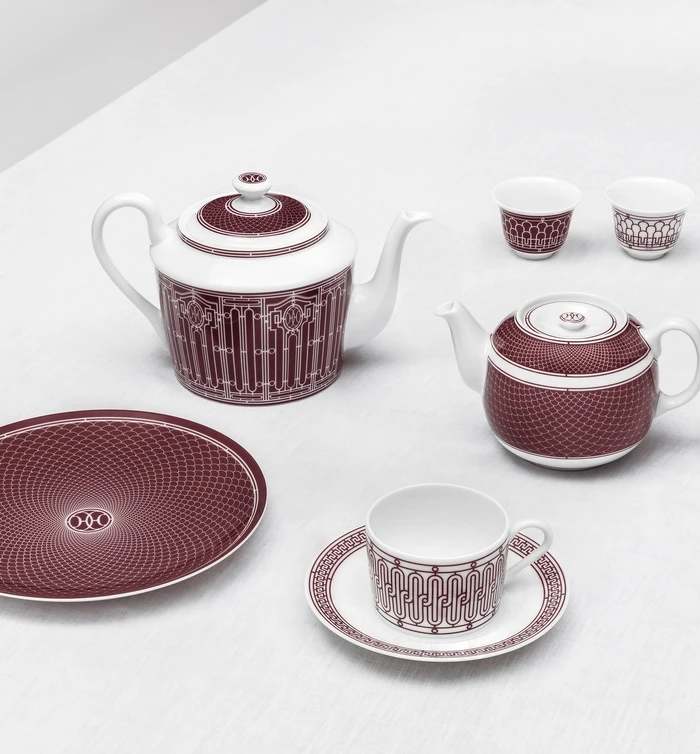 愛馬仕H Déco Rouge 餐桌系列推出新色,以Cuir rouge帶有皮革質感的紅色調演繹著新故事,設計靈感來自法國巴黎福寶總店與左岸店店裝的Art Déco裝飾藝術風格。整組餐瓷以手工貼花以及對比地紅白色系詮釋。此系列包含了置物盤、咖啡與茶杯組和各式餐盤等,全套共有19件餐具可選擇。