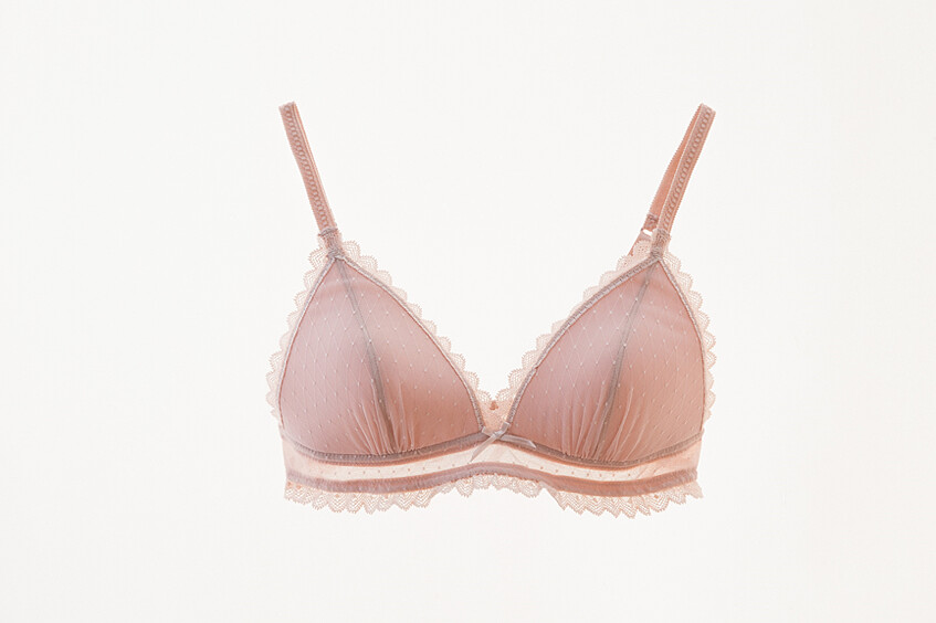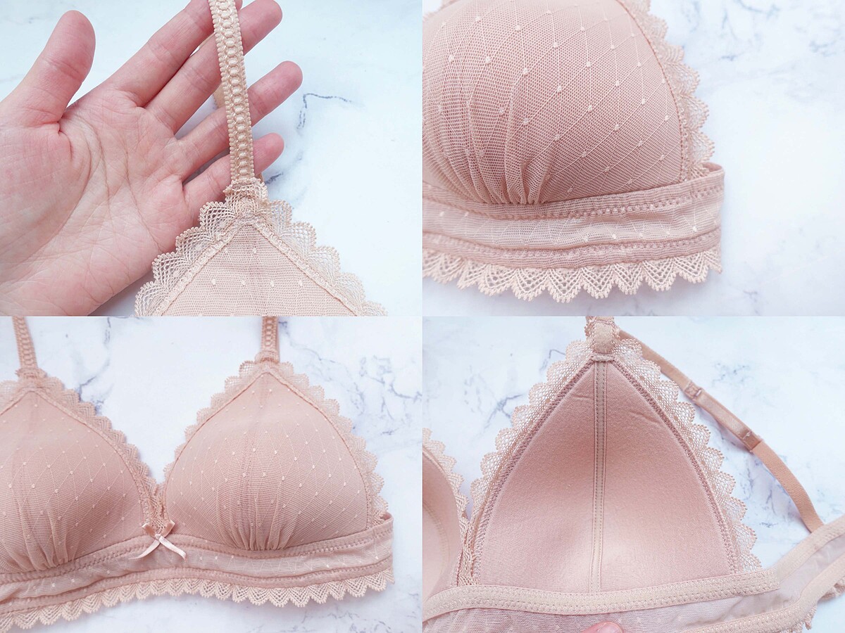 三角形雙拼剪裁的薄罩杯,就像是第二層肌膚般的貼合著,不壓胸,胸型自然美麗,無拘無束的透氣感,連肩帶都非常講究的使用彈力植絨材質,完全不會勒在肩膀的肉肉裡。