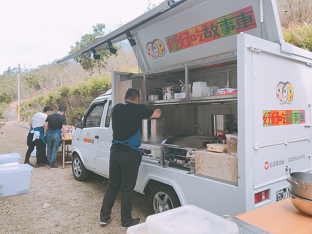 不只是廚師陣容堅強,還有來自永豐餘生技、信誼基金會、愛飯團和一群熱愛公益的志工一同參與,好好吃故事車的每一站除了以當地盛產食材為主角,更由信誼基金會規劃故事繪本,藉由餐前導讀的方式讓小朋友更加了解食材教育,比如洋蔥獨特的生長歷程、採收季節、在屏東車城生產特別美味的原因。
