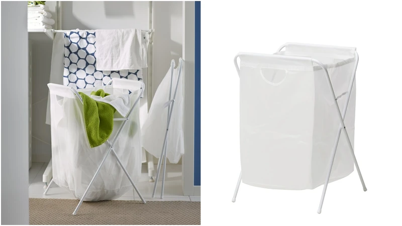 輕巧又可摺疊的JÄLL附架洗衣袋,洗衣服時可方便搬運,只要折疊起來就可以放入衣櫃或是掛在掛鉤上,不占空間非常好收納,還有超大容量能裝入8公斤衣服。