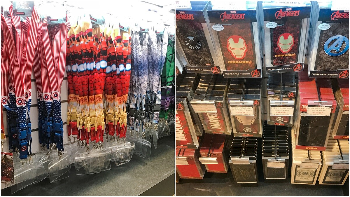 漫威影業10周年限定店也有販售一系列漫威電影的周邊商品,像是鋼鐵人、美國隊長、鷹眼、薩諾斯等公仔,還有限量的無限手套套裝組、手機殼、T-Shirt、雷神之槌等商品。