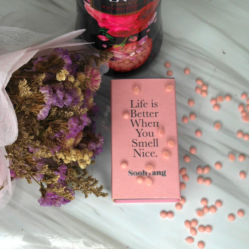 我最愛的味道是晨曦玫瑰,清甜中帶著一點花園香氣,彷彿能感受到初夏午後的浪漫溫暖氣息。除了拿來洗衣服我甚至把芳香豆分裝成小香包,放在車上、包包或是廁所也很香喔。每次只要一聞到就有種放鬆舒壓的感覺,推薦給妳們~